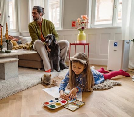 The AF 50 air purifier, equipped with advanced laser sensor technology and an automatic mode, effectively removes pathogens, fine dust, allergens, and odours in rooms ranging from 50 m² to 100 m².
